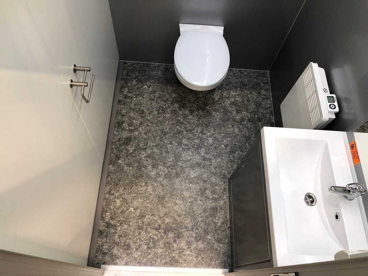 One faecal pump with shredding mechanism (chopping pump) per toilet. Allows the waste to be removed through an inch (1) wastewater hose